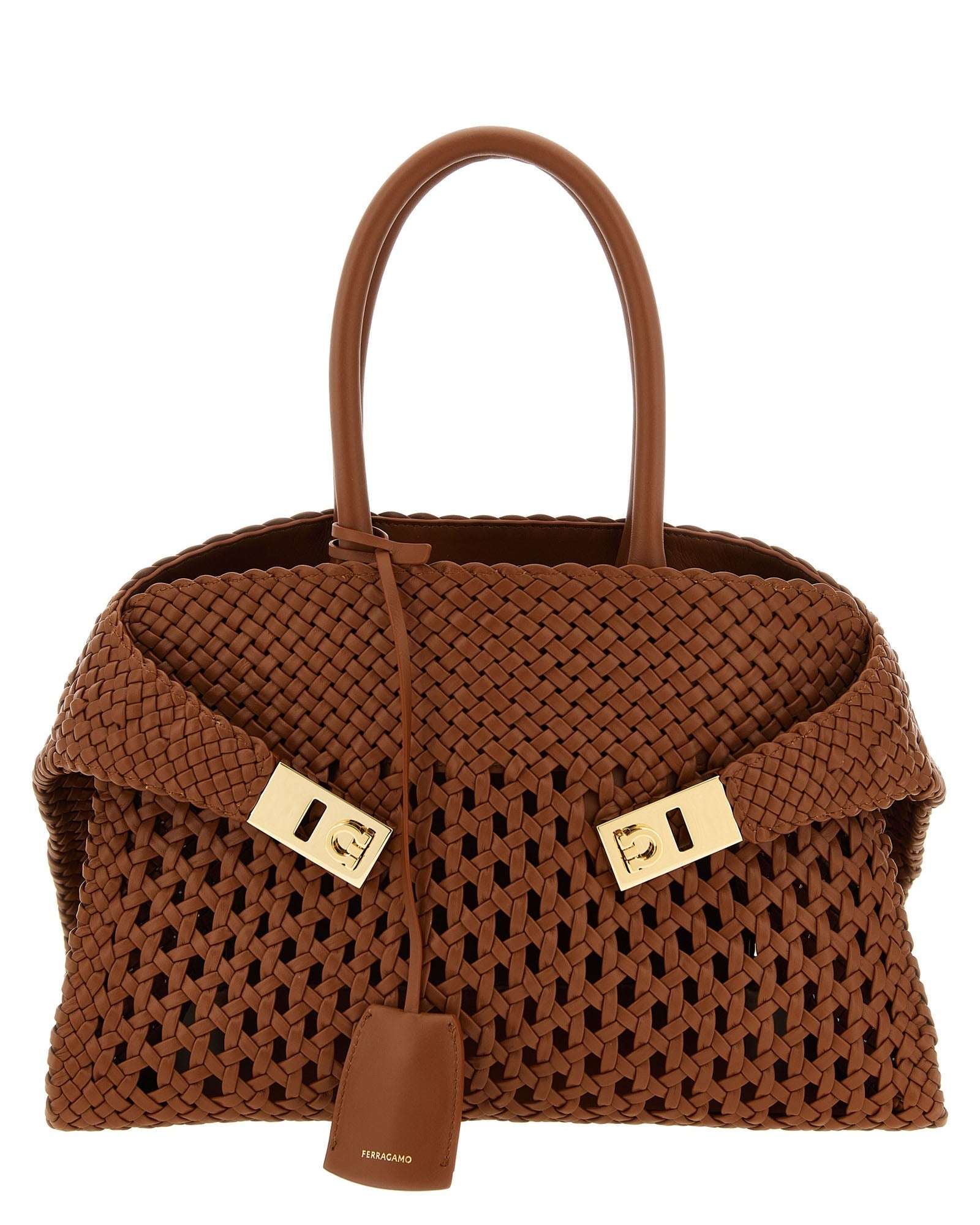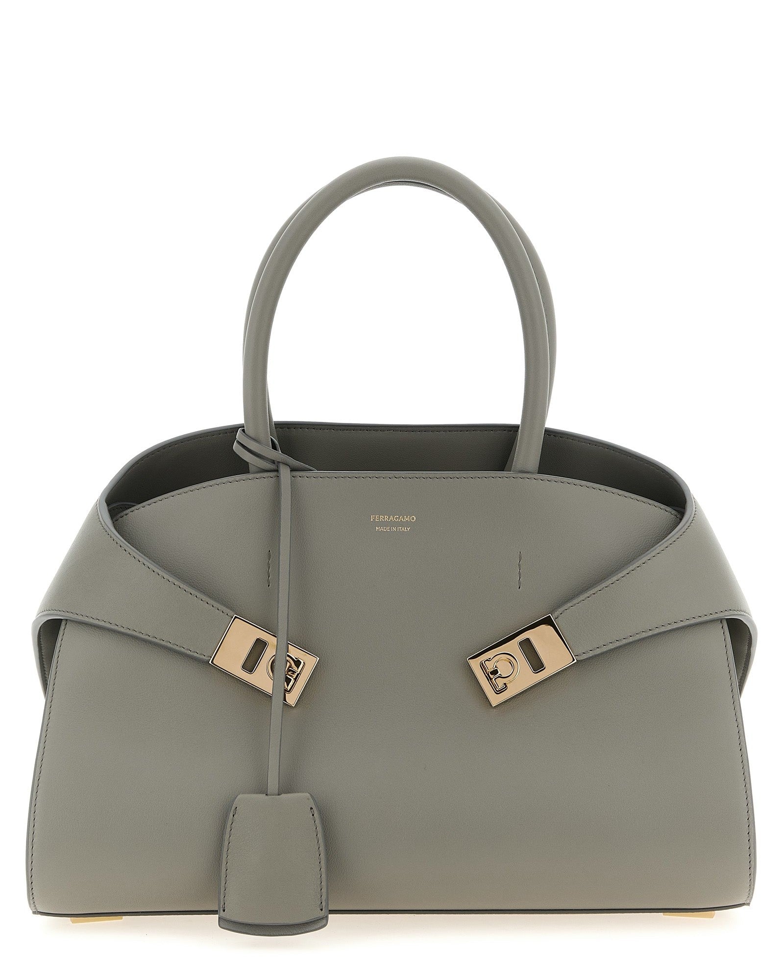 - Double handles with metal details